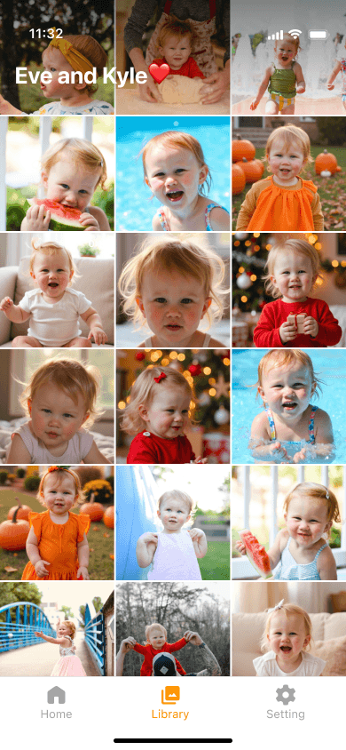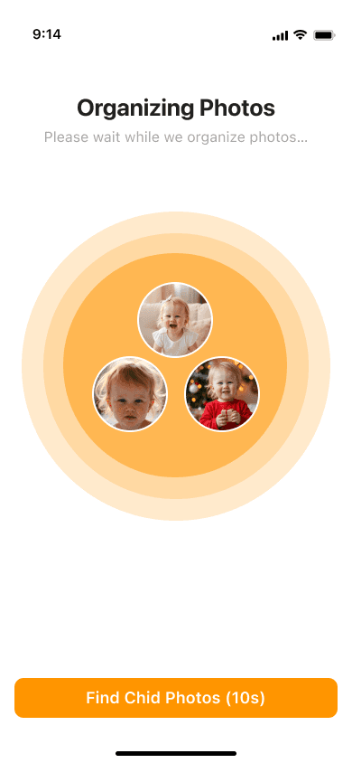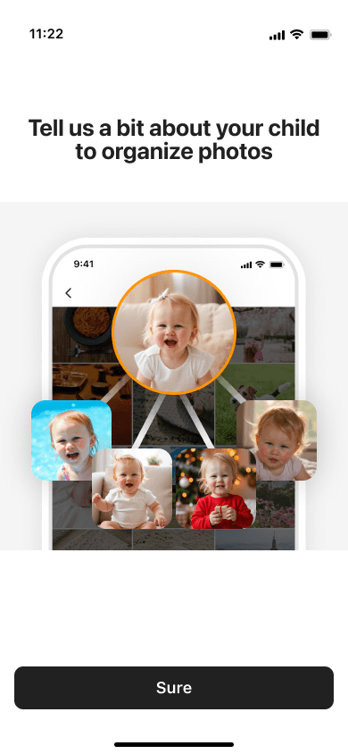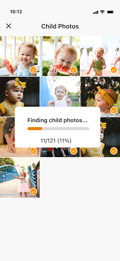 On-device AI automatically finds your child photos from your library. No more manual larbor.